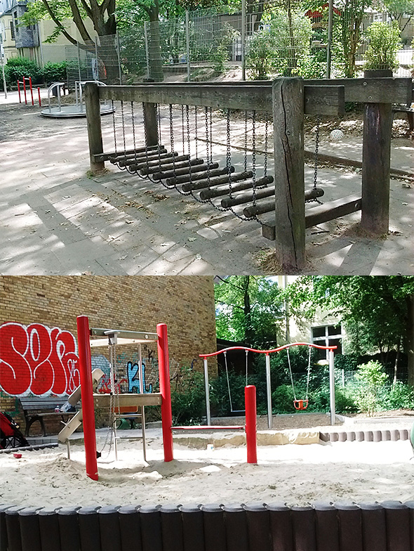 - Der Spielplatz in Essen hat 2 Sitzbänke